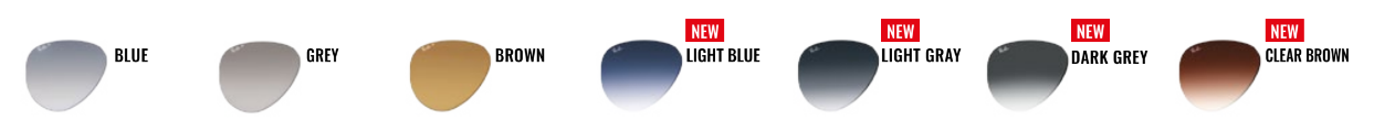 Barva čoček hraje ve stylu Ray-Ban® velkou roli. U slunečních brýlí Ray-Ban® si můžete vybrat z úžasně široké nabídky barev od zelené G-15 až po exkluzivní zrcadlo s polarizací. Aktuálně je dostupných 5 odstínů, 7 v gradientu, 5 zrcadlových verzí a 6 chromance.