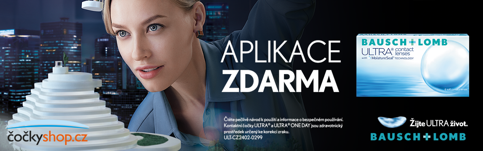 Výjimečně do 31.12. 2024 znovu spouštíme akci na zkoušku jednodenních a měsíčních čoček od Bausch+Lomb ULTRA® zdarma: