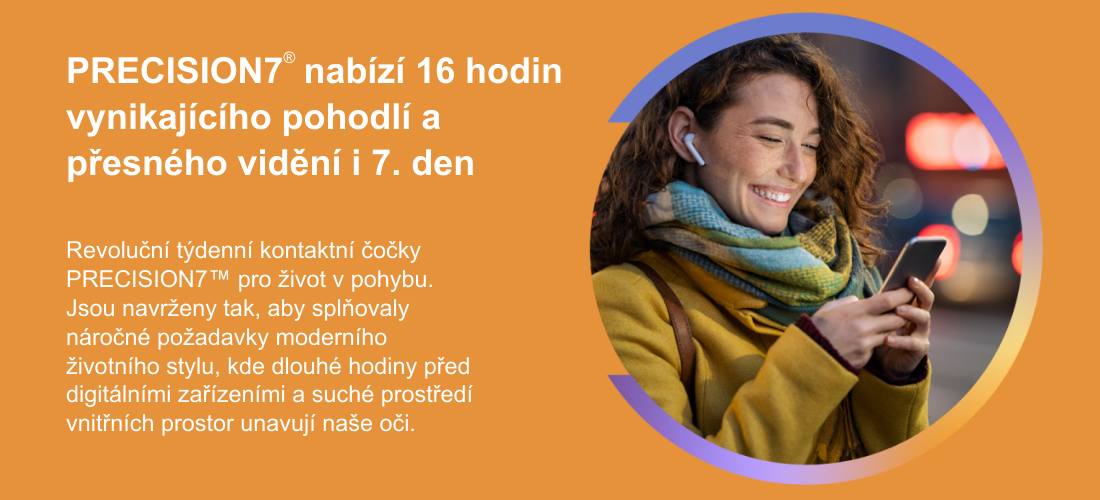 S PRECISION7® začínáte každý týden s úplně čerstvým a sterilním párem, což zajišťuje trvale hladký povrch čočky a minimální zátěž pro vaše oči. Stačí si vybrat svůj oblíbený den v týdnu pro nový pár a užít si 7 dní naprosté svobody. S tímto intuitivním týdenním rytmem už nemusíte nic složitě počítat – vaše oči budou v bezpečí a v té nejlepší kondici.